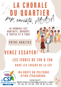 Dans le cadre de l’engagement en faveur de l’accès à la culture pour tous, la CSF a mise en place une dynamique culturelle, autour d’une chorale et de sorties.